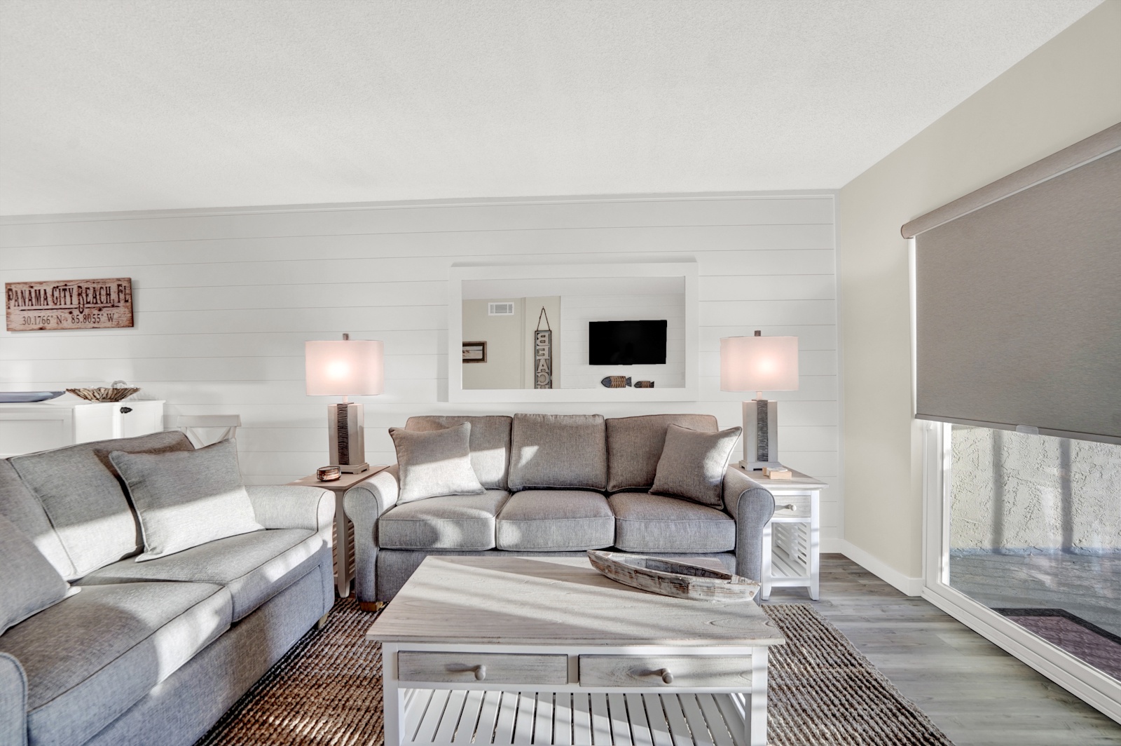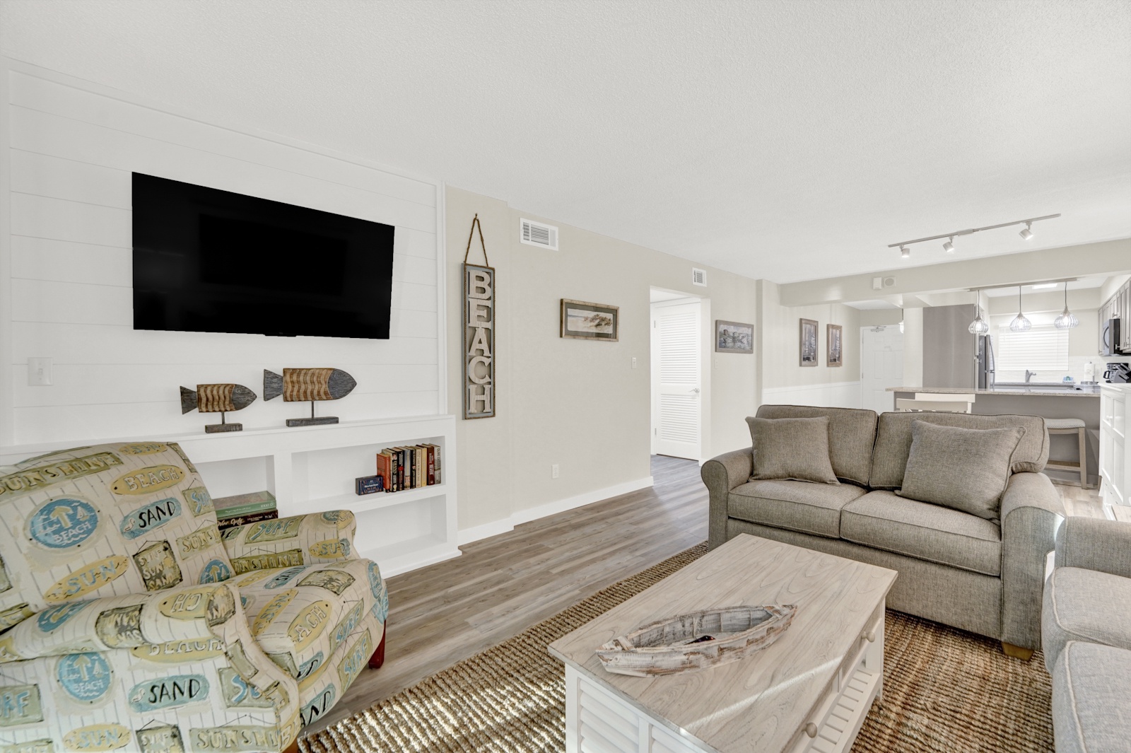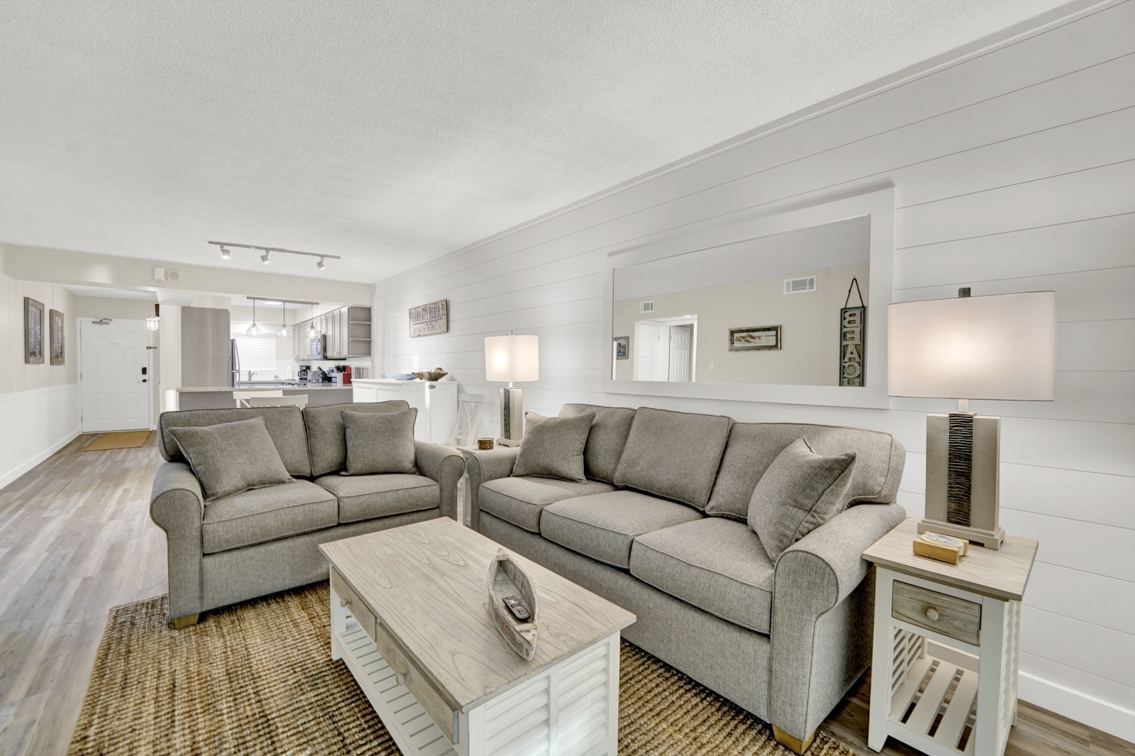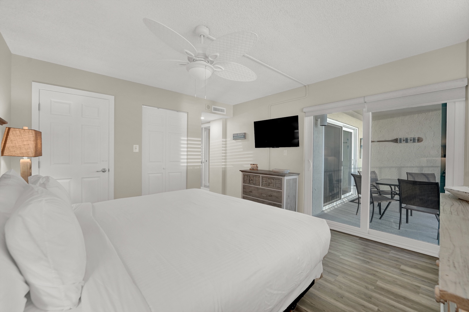 The living area features ample seating with sofa ,love seat and reclining chair. The sofa makes a Queen size bed for guests, The Master Bedroom has a King size bed with sliding glass doors that open to the private Balcony.