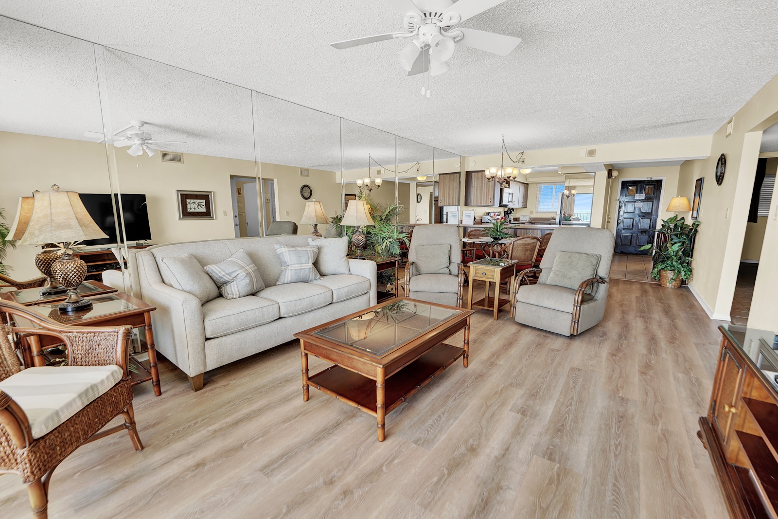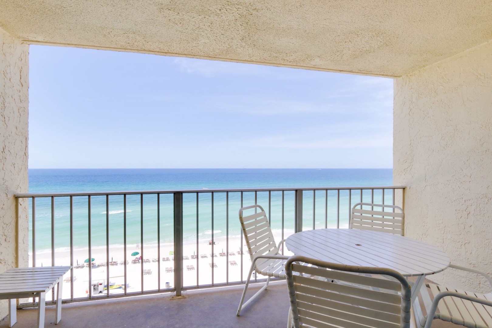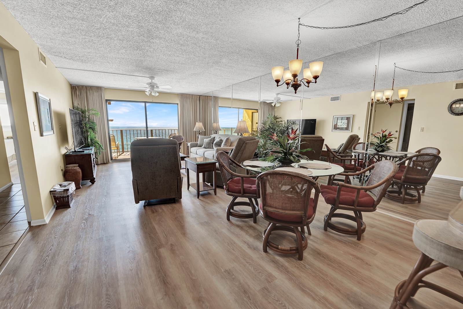 Lovingly decorated in a comfortable, contemporary style you will find this incredible condo with a phenomenal view of the Gulf! This 8th floor condo is a 2 bedroom 2 bath unit that easily sleeps six (6) people. Enter by the galley kitchen and take note of the zebra wood kitchen cabinets and countertops and the stainless steel appliances making meal preparation a breeze. The dining table seats four and there are bar stools for overflow seating. The living room with a large flat screen TV and DVD Player has abundant seating and the sofa doubles as a queen size bed. But, the view…..Ahhhhh, the view is phenomenal and to be coveted. The private patio opens from the living room and the master bedroom. The master bedroom provides a king size bed and a walk-in shower with elegant tilework. The 2nd bedroom offers two (2) twin beds and both bedrooms are equipped with a TV and DVD Player. It also has a washer and dryer provided for efficiency allowing you to take clean clothes home from your vacation.