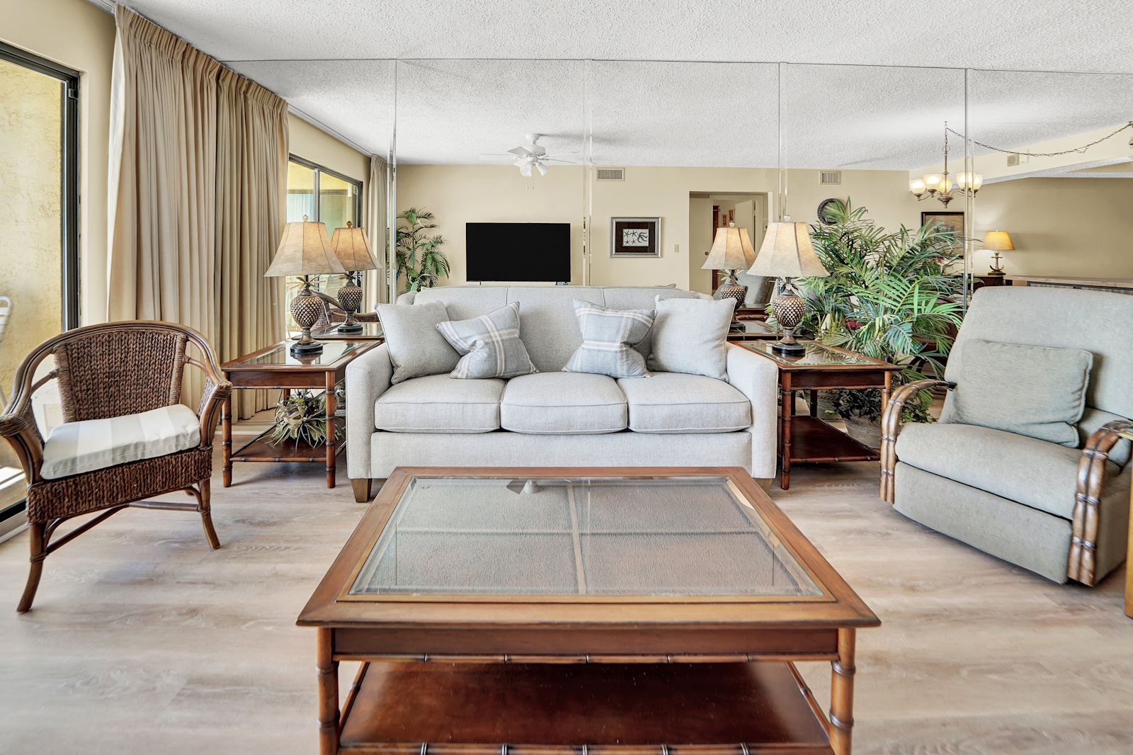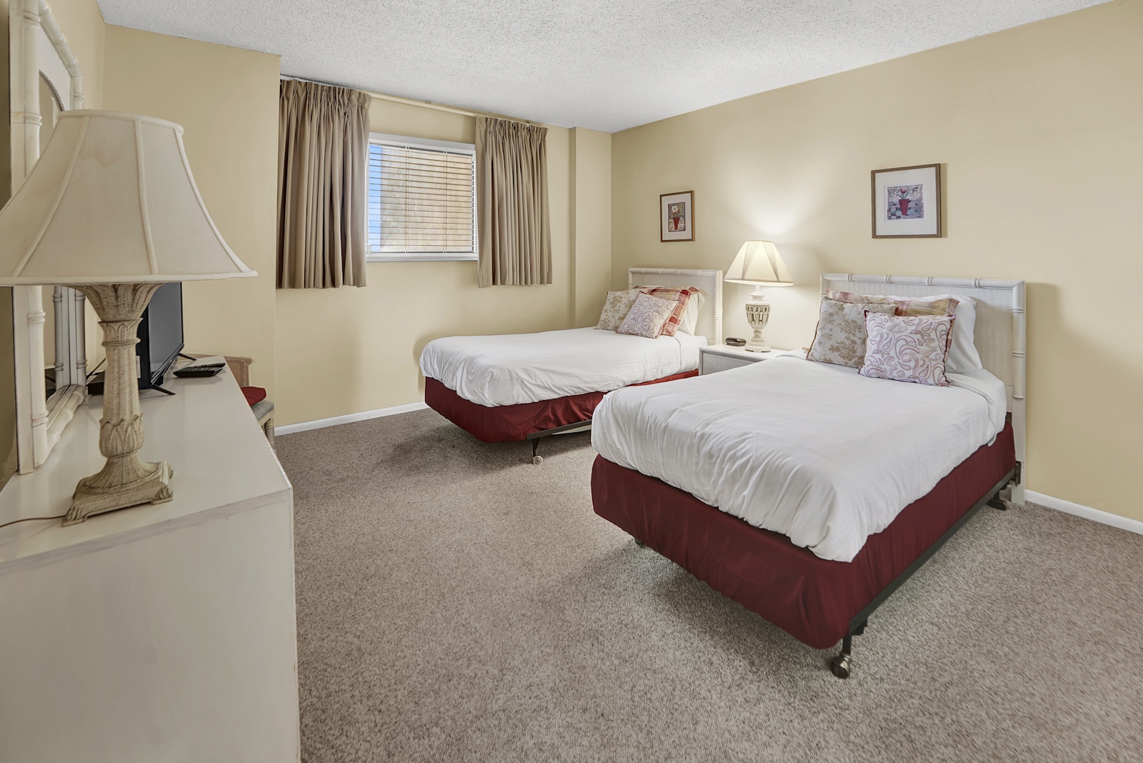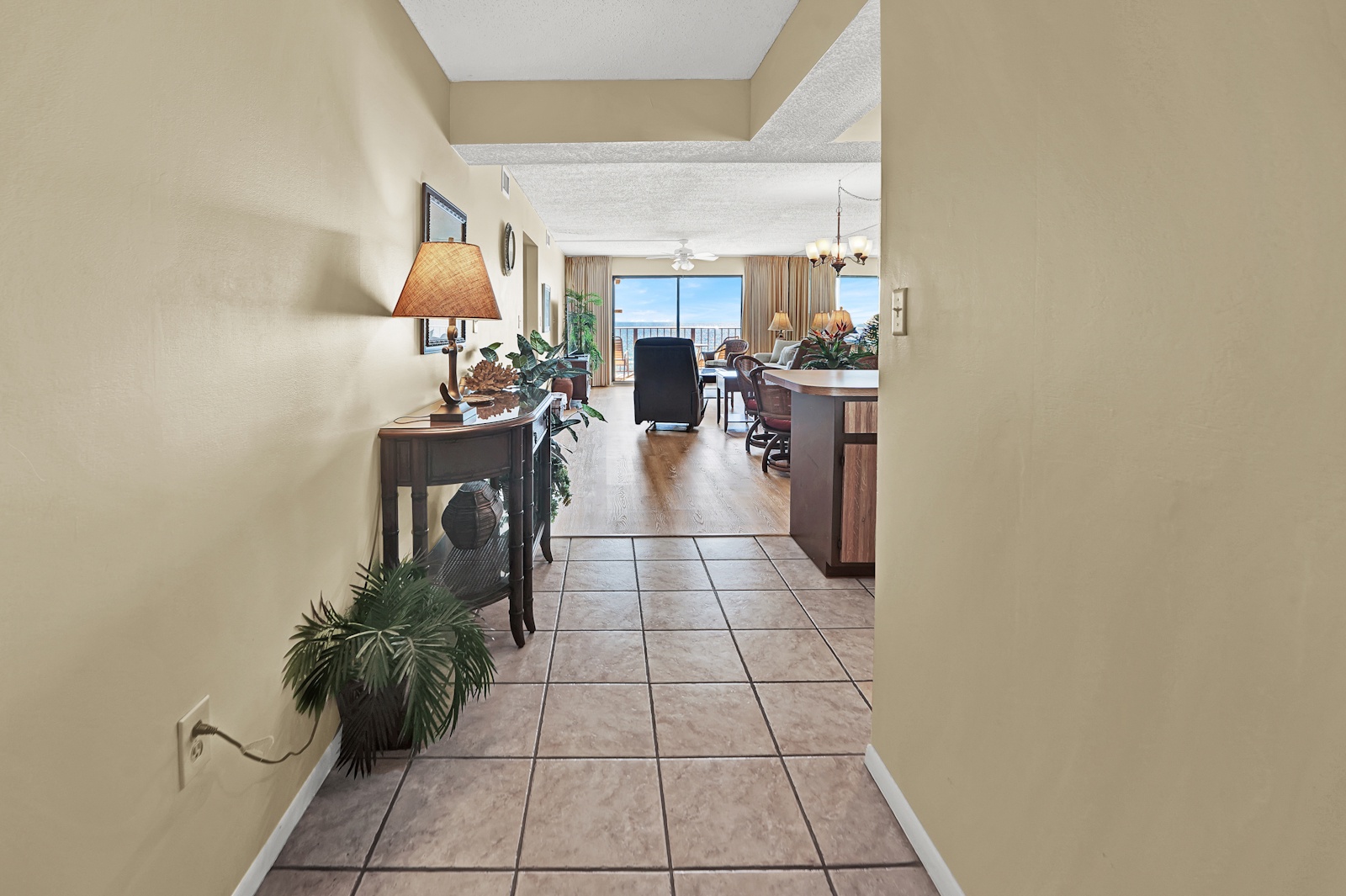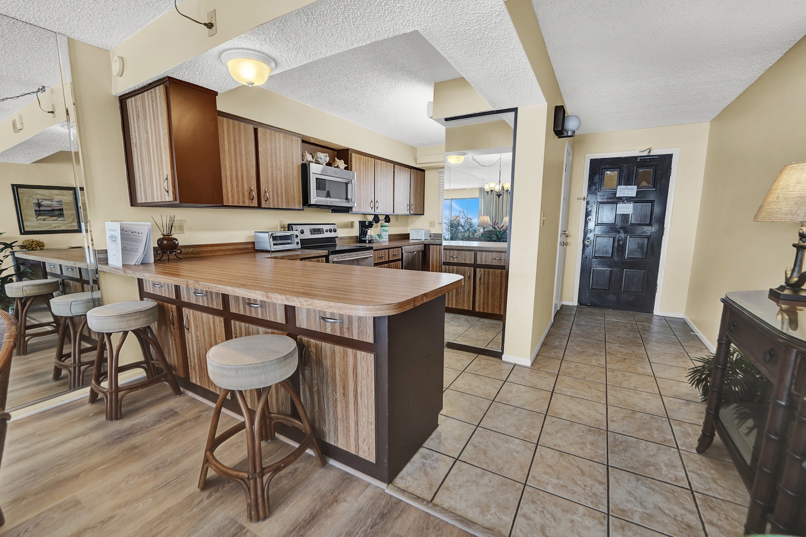 Lovingly decorated in a comfortable, contemporary style you will find this incredible condo with a phenomenal view of the Gulf! This 8th floor condo is a 2 bedroom 2 bath unit that easily sleeps six (6) people. Enter by the galley kitchen and take note of the zebra wood kitchen cabinets and countertops and the stainless steel appliances making meal preparation a breeze. The dining table seats four and there are bar stools for overflow seating. The living room with a large flat screen TV and DVD Player has abundant seating and the sofa doubles as a queen size bed. But, the view…..Ahhhhh, the view is phenomenal and to be coveted. The private patio opens from the living room and the master bedroom. The master bedroom provides a king size bed and a walk-in shower with elegant tilework. The 2nd bedroom offers two (2) twin beds and both bedrooms are equipped with a TV and DVD Player. It also has a washer and dryer provided for efficiency allowing you to take clean clothes home from your vacation.